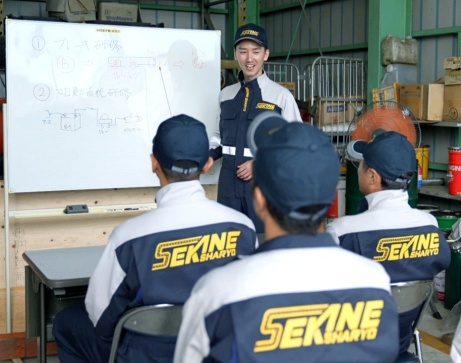 月に1回程度、ベテラン社員主催による勉強会も実施。会社が用意した試験用車輛などを使って、実際に車を分解したり組み立てたりしながら、車の構造をより深く理解します。